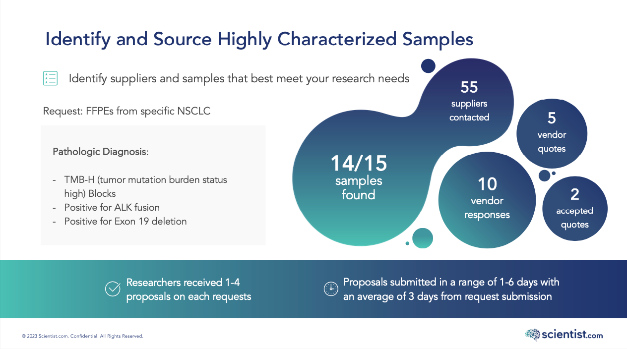 Access exclusive insights from leading pharmaceutical companies, researchers and sample providers on the current landscape of sourcing human biological samples (HBS) for research and unlock trends and observations from the world's largest platform for the sourcing of HBS, Scientist.com.